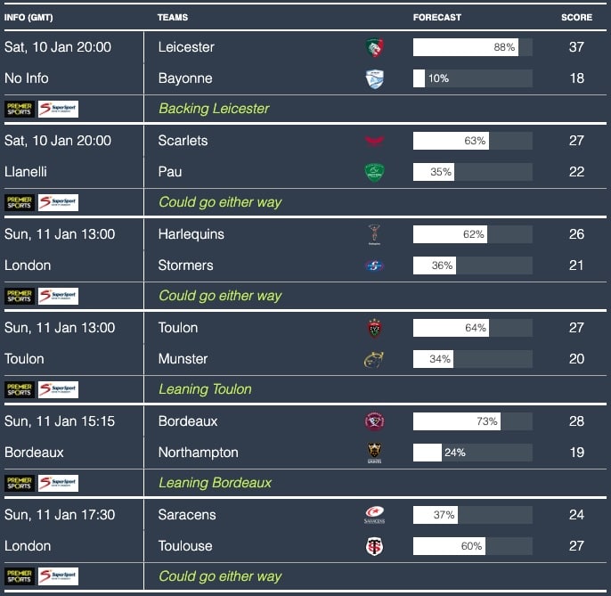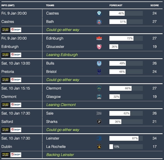 Here are the match predictions courtesy of Rugby4Cast’s predictor algorithm
