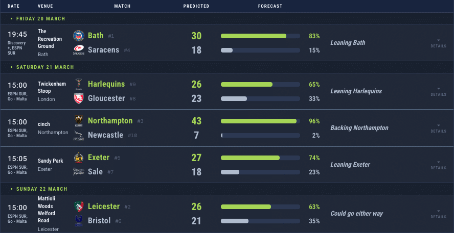 Here are the match predictions courtesy of Rugby4Cast’s predictor algorithm…