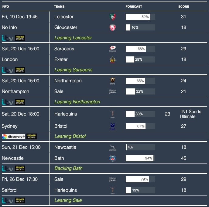 Here are the match predictions courtesy of Rugby4Cast’s predictor algorithm