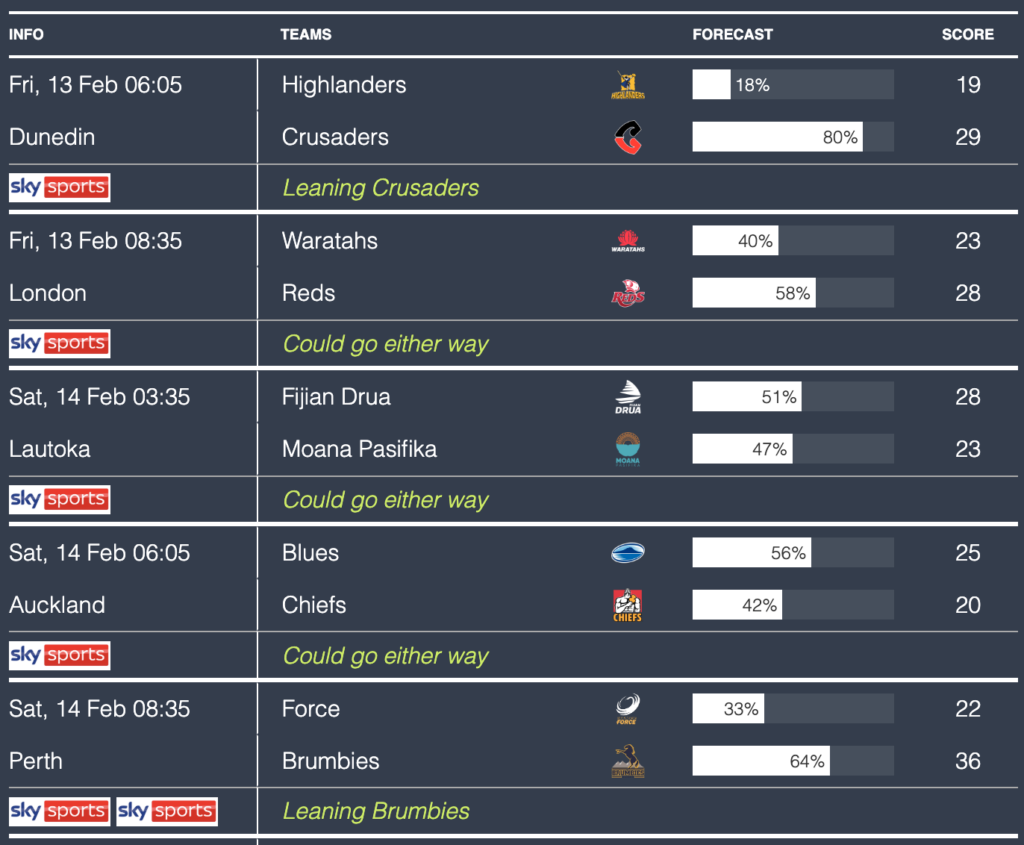 Here are the match predictions courtesy of Rugby4Cast’s predictor algorithm…