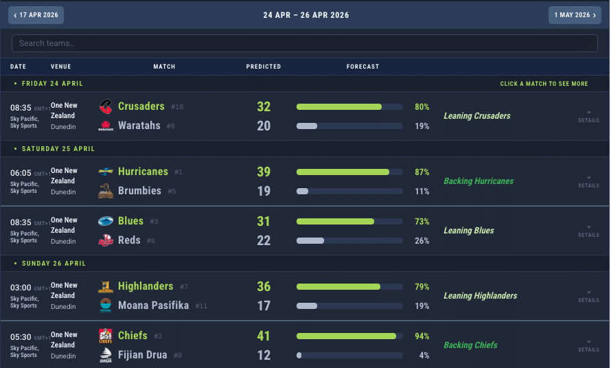Here are the match predictions courtesy of Rugby4Cast’s predictor algorithm…
