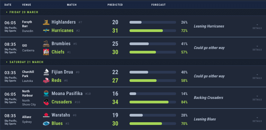 Here are the match predictions courtesy of Rugby4Cast’s predictor algorithm…