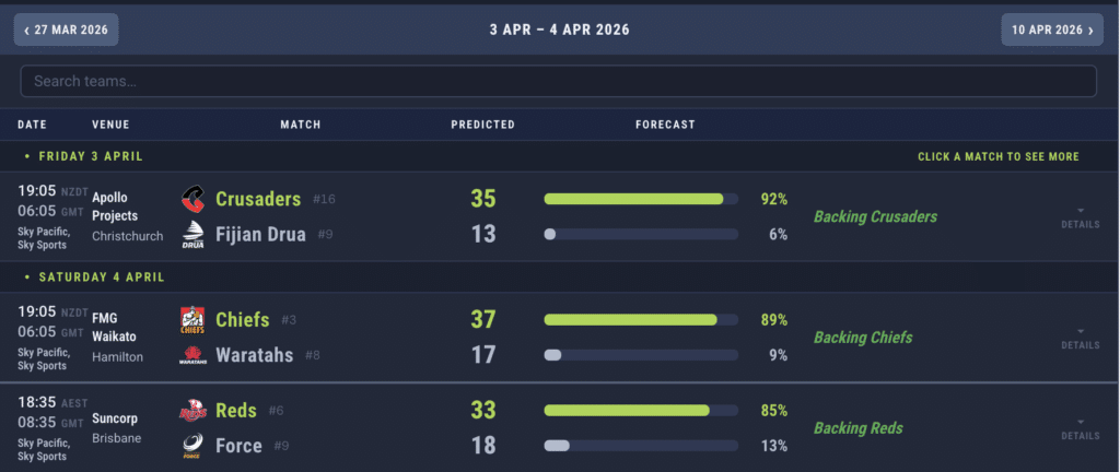 Here are the match predictions courtesy of Rugby4Cast’s predictor algorithm…
