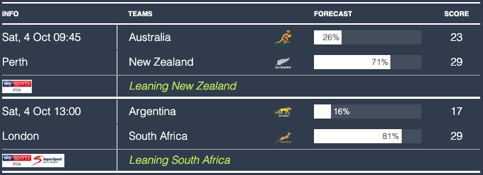 Here are the match predictions courtesy of Rugby4Cast’s predictor algorithm…