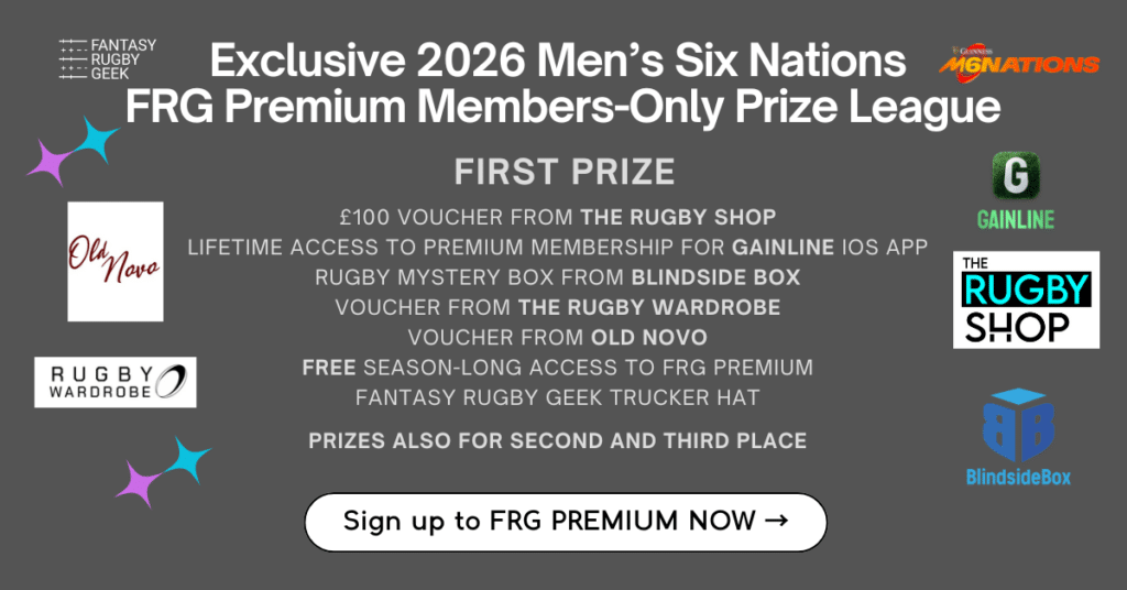 Now live on Buy Me A Coffee, unlock further fantasy rugby insights with Fantasy Rugby Geek Premium! Covering The Rugby Championship, URC, Premiership Rugby, Champions Cup and Men’s and Women’s Six Nations. With your subscription, you’ll see the exact teams that I am playing with, get access to further private posts, and I will also offer you a personalised review of your teams, outlining any opportunities for improvement. All your subscriptions go back into the costs of running fantasyrugbygeek.com!