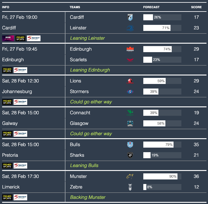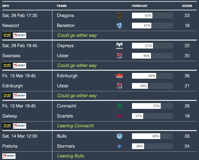 Here are the match predictions courtesy of Rugby4Cast’s predictor algorithm…