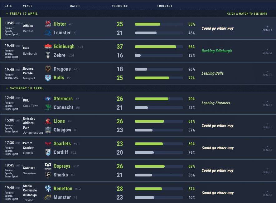 Here are the match predictions courtesy of Rugby4Cast’s predictor algorithm…