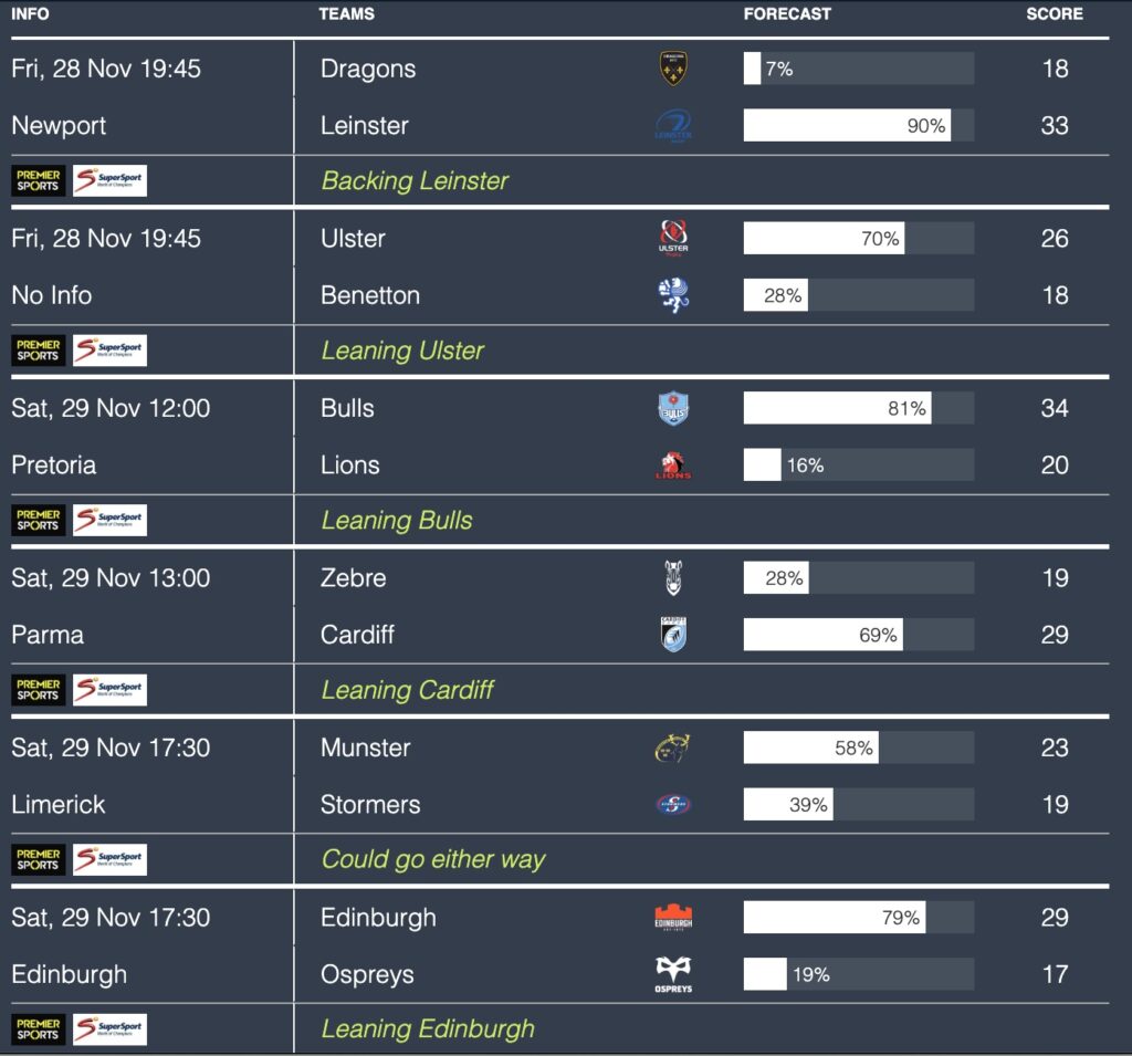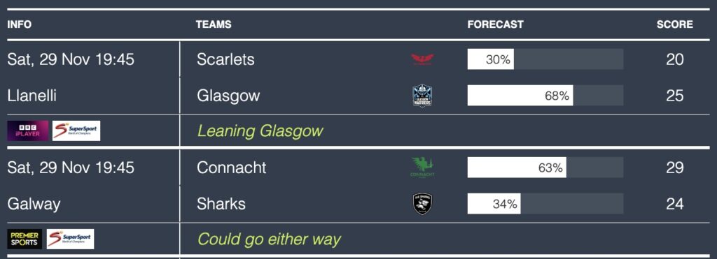 Here are the match predictions courtesy of Rugby4Cast’s predictor algorithm